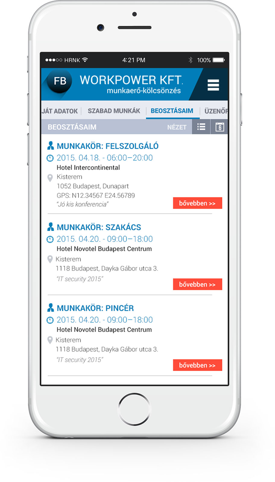 Munkatársaink számára egyedi applikációt biztosítunk, amely segít az eligazodásban, információk elérésében, dokumentumkezelésben és a beosztásod megtervezésében is.